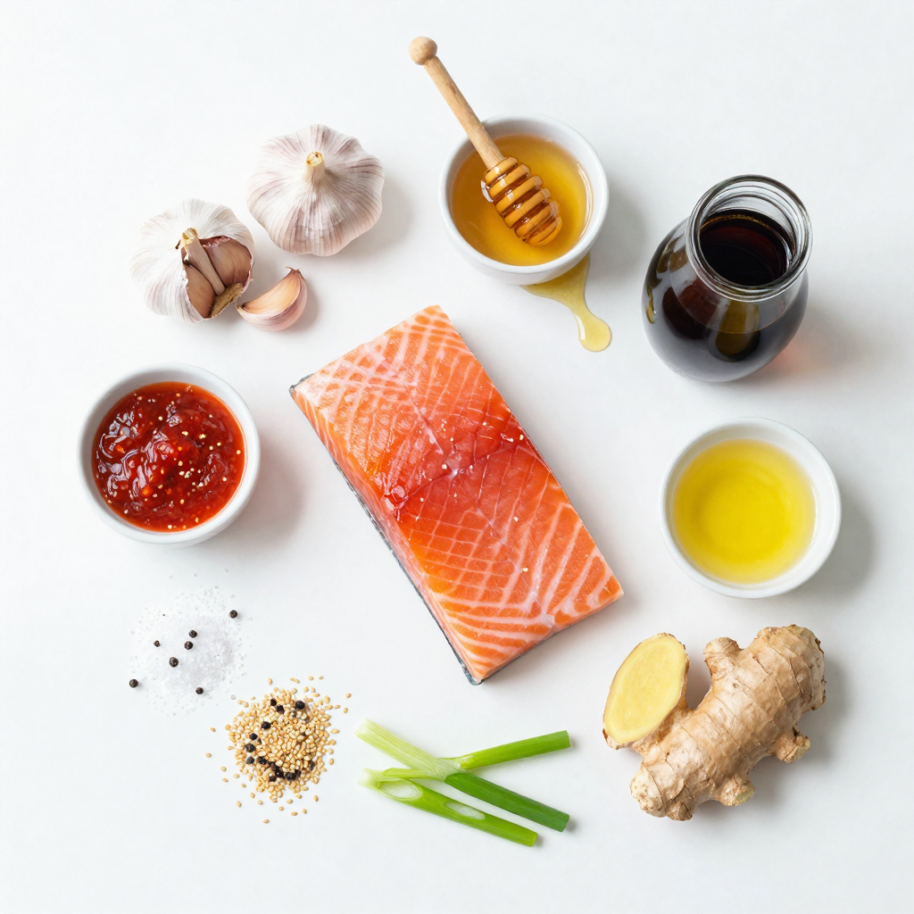 A flavorful salmon dish marinated in a sweet and spicy chili garlic sauce.