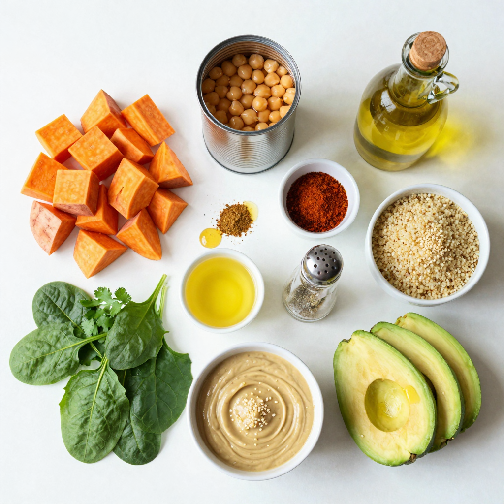 Sweet potatoes are the star of this bowl. They add natural sweetness and a creamy texture. Chickpeas bring protein and fiber, making the meal filling. Avocado gives a smooth finish and healthy fats.