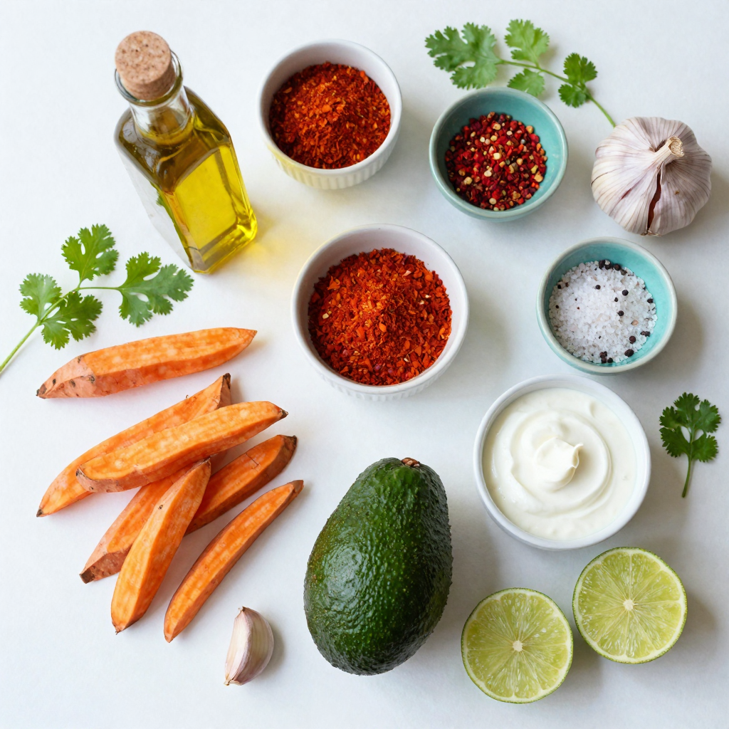 - 2 large sweet potatoes, peeled and cut into thin fries - 2 tablespoons olive oil - 1 teaspoon paprika - 1 teaspoon garlic powder - ½ teaspoon cayenne pepper (optional for heat) - Salt and pepper to taste - 1 ripe avocado - 2 tablespoons Greek yogurt - 1 tablespoon lime juice - 1 small clove garlic, minced - Fresh cilantro for garnish To make sweet potato fries, you need a few simple items. Start with large sweet potatoes. They bring a nice sweetness and vibrant color. Olive oil helps achieve a crispy texture. Spices like paprika and garlic powder add flavor. If you like heat, cayenne pepper is optional. For the avocado dip, grab a ripe avocado. It should feel soft when you press it gently. Greek yogurt makes the dip creamy and adds protein. Lime juice gives it a zesty kick. A small clove of garlic adds depth to the flavor. Finally, fresh cilantro can brighten your dish. With these ingredients, you can create a tasty snack or side dish. The flavors mix well and complement each other perfectly. If you want to see the complete recipe, check out the Full Recipe section. First, I preheat the oven to 425°F (220°C). This step is key for crispy fries. Next, I line a baking sheet with parchment paper. It helps the fries not stick. Now, I take 2 large sweet potatoes. I peel them and cut them into thin fries. Aim for about 1/4-inch thick. This size ensures even cooking. In a large bowl, I mix the fries with olive oil, paprika, garlic powder, cayenne pepper, salt, and pepper. I toss everything together until the fries are well coated. This blend adds a tasty kick. I spread the fries out in a single layer on the baking sheet. This step keeps them from steaming. I bake the fries for about 25-30 minutes. Halfway through, I flip them for even cooking. They should turn golden and crispy. To achieve optimal crispiness, I avoid overcrowding the baking sheet. If fries touch, they won’t crisp up. While the fries bake, I make the avocado dip. I grab a ripe avocado and mash it in a small bowl. I aim for a smooth texture. Next, I add Greek yogurt, lime juice, minced garlic, salt, and pepper to the mashed avocado. I stir everything until creamy. This dip adds a fresh flavor. For tips, I suggest adjusting the garlic to your liking. You want a balance of flavors that complements the fries. Once the fries are done, I serve them hot with the avocado dip. The combination is simply delightful! For the complete recipe, check out the [Full Recipe]. To get crispy sweet potato fries, you must not overcrowd the baking sheet. When fries sit on top of each other, they steam instead of bake. This makes them soggy, not crispy. Spread them out in a single layer with space in between. Cooking times can vary. Most ovens will take about 25 to 30 minutes at 425°F (220°C). Check them halfway through and flip for even cooking. If your oven runs hot or cold, adjust the time as needed. Adding spices can make your sweet potato fries pop. Try sprinkling on some cinnamon or chili powder for a tasty twist. You can also toss in some fresh herbs like rosemary or thyme. Looking for toppings? Grated parmesan cheese or crumbled feta can add great flavor. A drizzle of balsamic glaze or hot sauce can also elevate the dish. You can prep your sweet potato fries in advance. Cut and season them, then store them in the fridge for up to 24 hours. When ready, bake them straight from the fridge; just add a few extra minutes to the cooking time. For serving, consider a fun presentation. Use a large platter with the fries piled high. Place the avocado dip in a bowl in the center, garnished with fresh cilantro. It makes a great visual and invites everyone to dig in. For the full recipe, check out the link provided. {{image_2}} You can make your sweet potato fries spicy by adding heat. Use chili powder for a smoky kick. You can also try cayenne pepper for a fiery burst. If you prefer a wet heat, drizzle hot sauce on the fries before baking. This will give them a zesty flavor. Mix and match these spices to find your perfect heat level. While the avocado dip is creamy and tasty, you can explore other options. A yogurt-based dip adds a tangy twist and pairs well with fries. Try mixing Greek yogurt with herbs like dill or mint for a fresh taste. Tahini also makes a great dip. It brings a nutty flavor that complements sweet potatoes nicely. Sweet potatoes are not alone! You can mix them with other veggies for a colorful twist. Try adding carrot or zucchini fries to the mix. This not only adds flavor but also boosts nutrition. Cut them into similar sizes to ensure even cooking. This way, you get a rainbow of flavors and textures on your plate. For the full recipe, check out the details above. Enjoy your delicious and fun variations! Sweet potato fries can stay fresh in the fridge for up to three days. To store them, place the fries in an airtight container. This keeps them from getting soggy and helps maintain flavor. Always let the fries cool completely before sealing them. This prevents steam buildup, which can make them mushy. To reheat sweet potato fries and keep them crispy, use an oven or an air fryer. Preheat your oven to 400°F (200°C). Spread the fries on a baking sheet in a single layer. Bake for about 10 minutes or until heated through. If using an air fryer, set it to 350°F (175°C) and cook for about 5-7 minutes. Avoid using a microwave, as it makes fries soft and chewy. To freeze sweet potato fries, first, bake them as you would for the recipe. Allow them to cool completely. Then, spread the fries in a single layer on a baking sheet and freeze for about an hour. Once frozen, transfer the fries to a freezer bag. Seal it tightly, removing as much air as possible. When you want to enjoy them, reheat straight from the freezer. Bake at 425°F (220°C) for 25-30 minutes, flipping halfway through. This method keeps them tasty and crisp. For the full recipe, check out the link provided. Yes, you can use orange sweet potatoes. They are similar to y