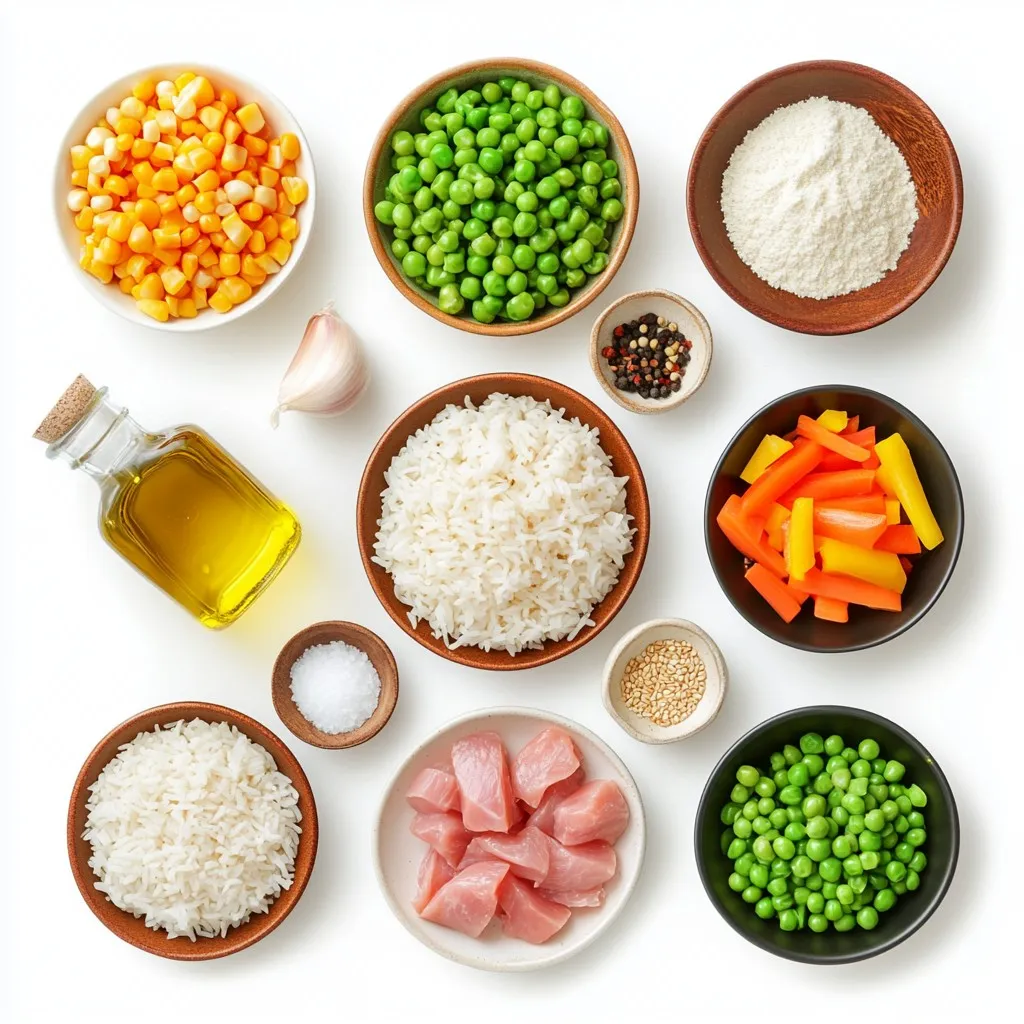 In this recipe, I use jasmine rice. It gives a nice texture. Day-old rice is best. It helps avoid clumping. I also use one pound of diced chicken breast. This adds protein and flavor. You will need three tablespoons of teriyaki sauce. This sauce brings that sweet and salty taste.