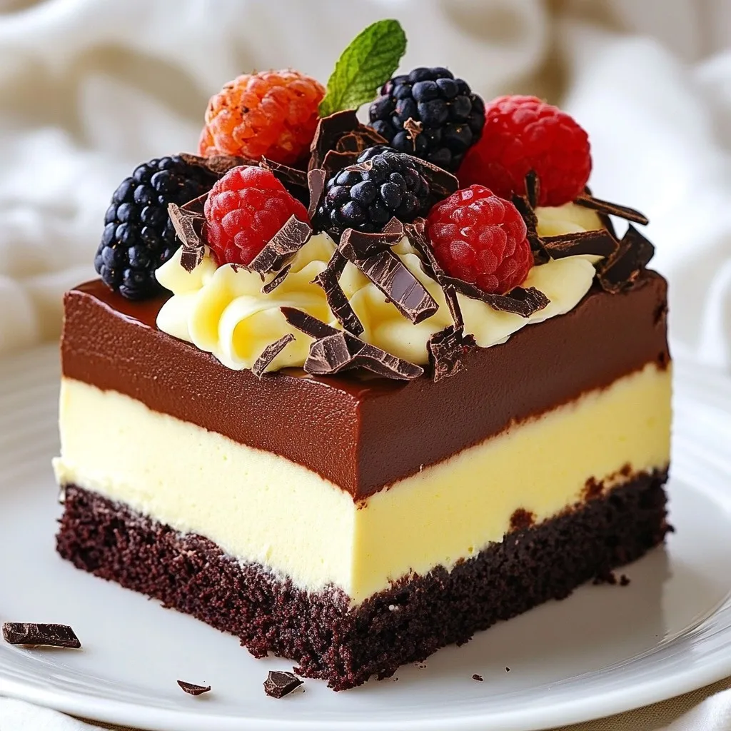 - Texture Contrast: The silky smoothness of the mousse layers contrasts perfectly with the dense chocolate cake, providing a delightful mouthfeel in every bite.