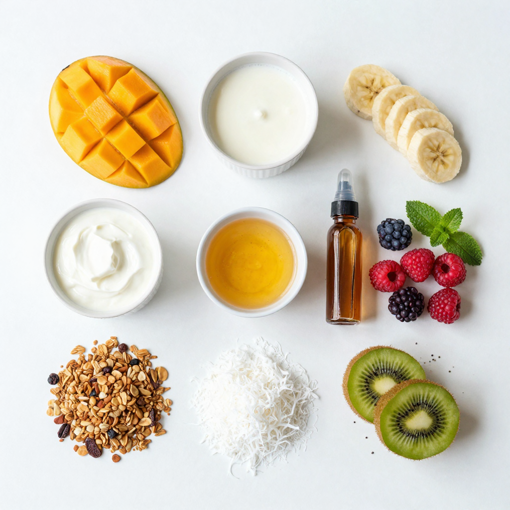 Start by gathering all your ingredients. You need ripe mangos, a banana, coconut milk, honey, vanilla extract, and Greek yogurt. Peel and dice the mangos into small pieces. Slice the banana into rounds. Having everything ready makes the process smooth and fun.
