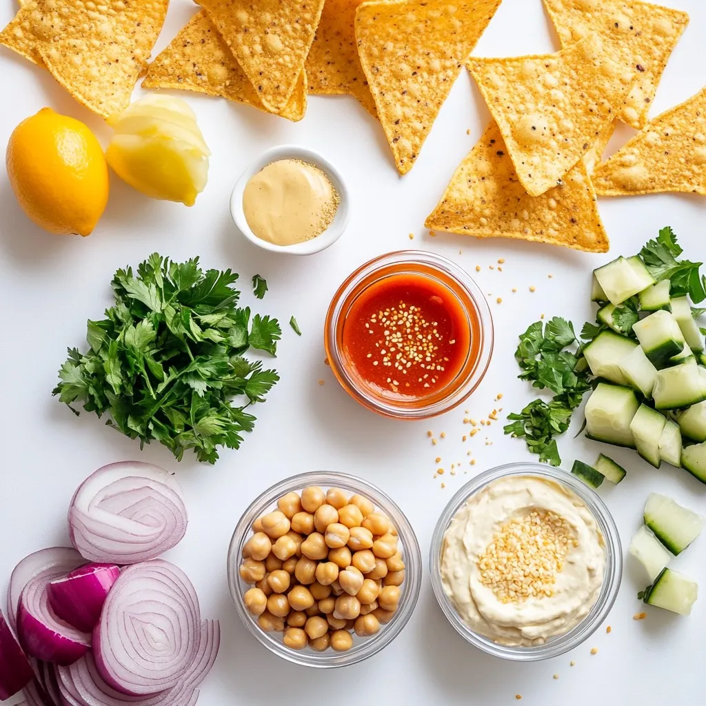 The base of this dip starts with chickpeas. They bring protein and texture. Next, vegan cream cheese adds a creamy feel. Hot sauce gives it the spicy kick we love. Nutritional yeast adds a cheesy taste without dairy. Tahini, made from sesame seeds, adds richness. Lemon juice brightens the flavor. Garlic and onion powders round out the taste. Lastly, salt and pepper enhance everything.