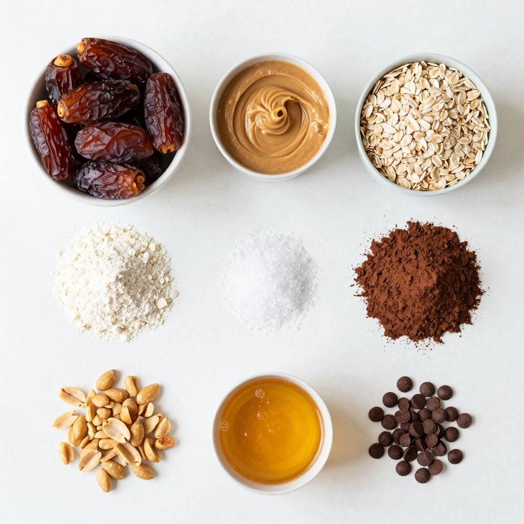 To start, gather your ingredients. You’ll need dates, peanut butter, oats, and more. In a food processor, add the pitted dates, peanut butter, rolled oats, almond flour, cocoa powder, and sea salt. Blend this mix until it looks like sticky dough. This step is key; it gives the bites their chewy base. Next, pour in the maple syrup and vanilla extract. Pulse until everything combines well.