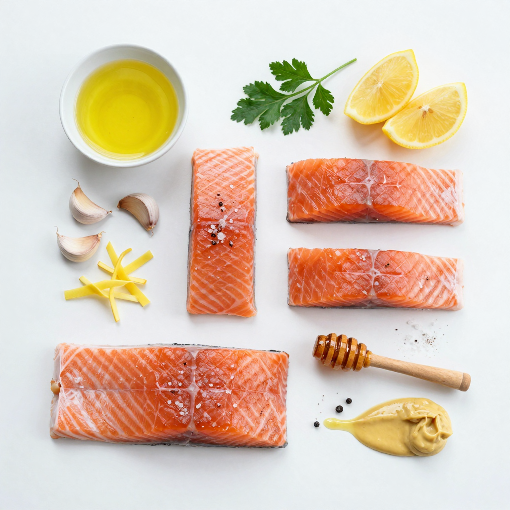 For this dish, you need 4 salmon fillets, each 6 ounces. Salmon is rich in flavor and will soak up the marinade well. Fresh fillets give the best taste, but frozen can work too.